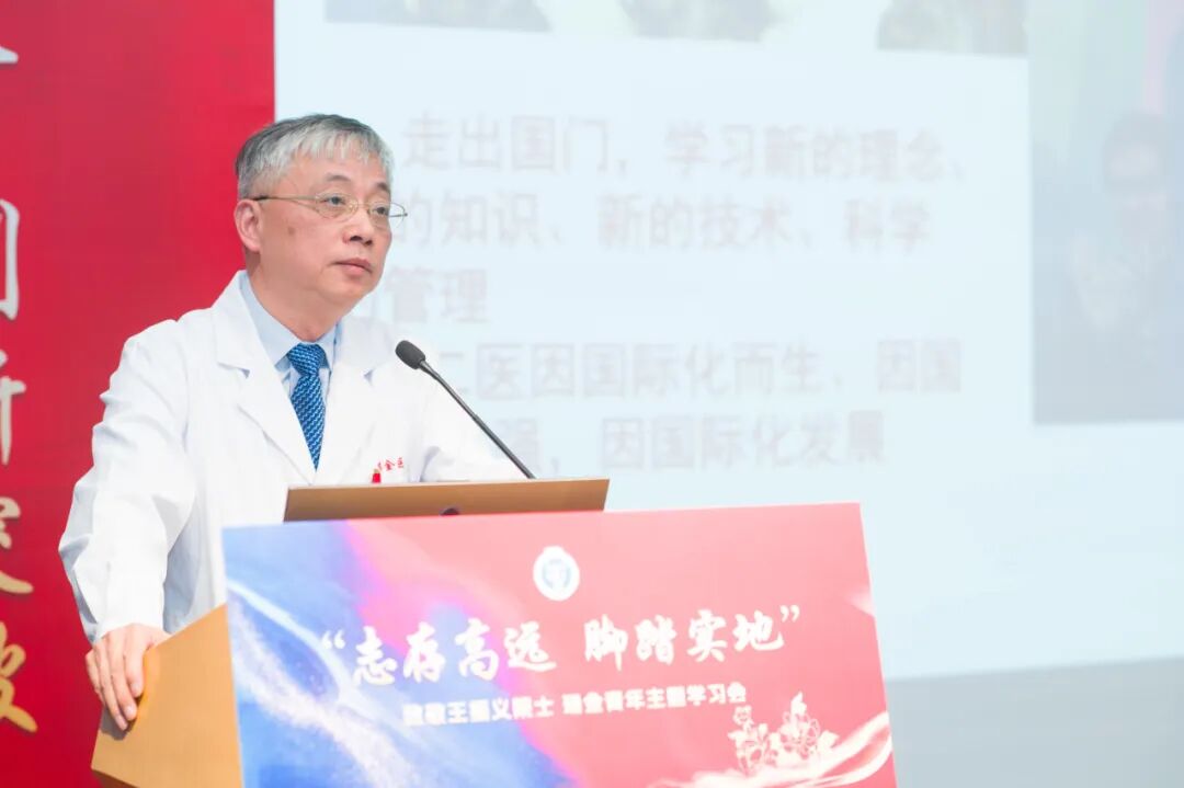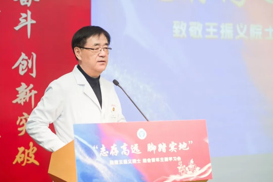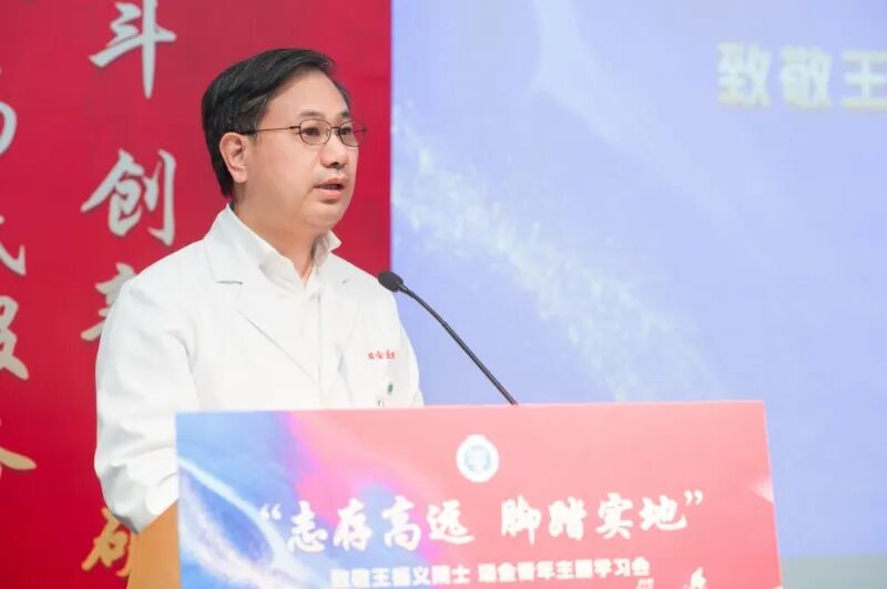 最后,瞿介明书记在讲话中指出,王振义院士毕生从事血液科研究,执着专注,几十年如一日深入研究,攻克了“急性早幼粒细胞”白血病,提出“上海方案”,拯救了无数生命。王振义院士始终秉持“人民至上、生命至上”的理念,无私奉献,展现了医者的大爱与责任。他的事迹激励着瑞金的青年们,在为人民服务、传承医学精神、创新探索中不断前行。瑞金医院党政班子深信,瑞金青年必将以王振义院士为榜样,传承和发扬他的精神,勇担使命,为建设健康中国贡献力量。