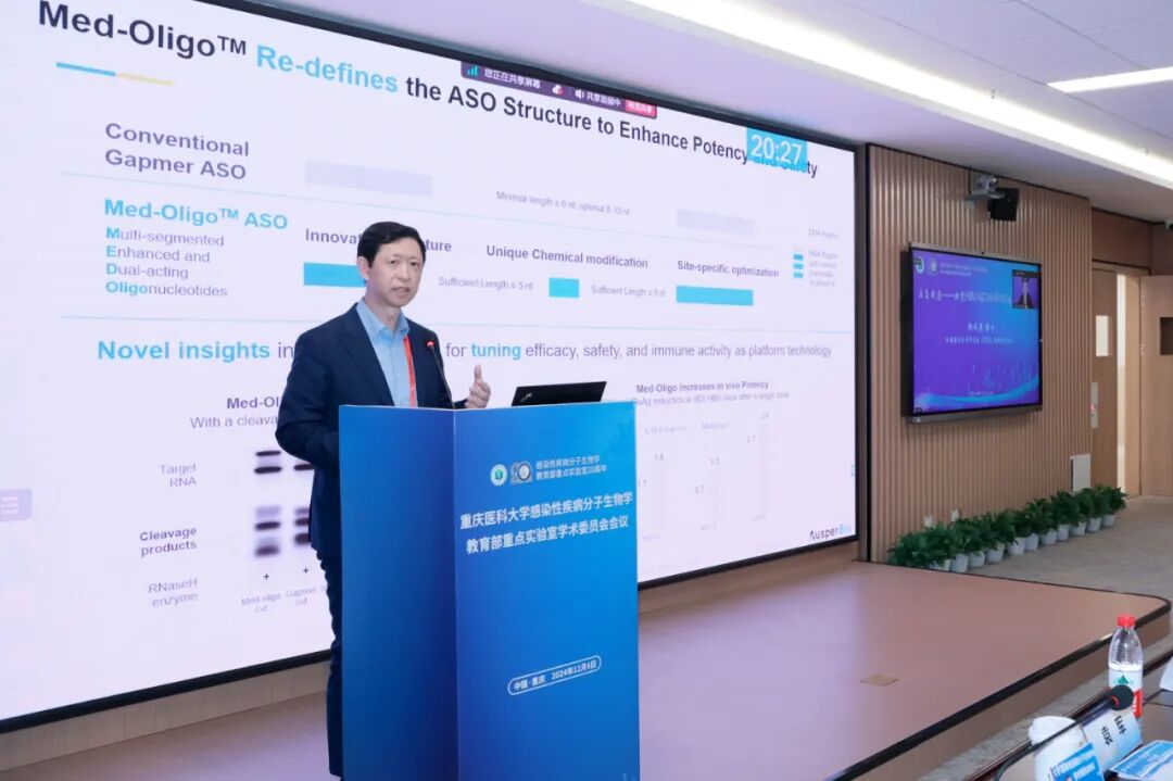 杨成勇博士就新型HBV ASO AHB-137临床研究进展进行了主旨报告。他介绍了乙肝在研药物AHB-137(反义寡核苷酸, ASO)在临床试验中展现出同类最优的乙肝表面抗原的降低能力,引起现场与会专家的广泛关注。