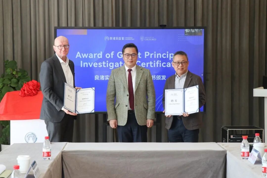 11月27日,良渚实验室-牛津大学联合项目启动会暨良渚-牛津联合研究中心揭牌仪式举行。会上,Eric O'Neill教授和姜石松教授分别对联合研究申请项目进行路演;良渚实验室常务副主任欧阳宏伟教授为Eric O'Neill教授、姜石松教授颁发良渚实验室客座研究员证书;欧阳宏伟教授与Mark Middleton教授共同为良渚-牛津联合研究中心揭牌。