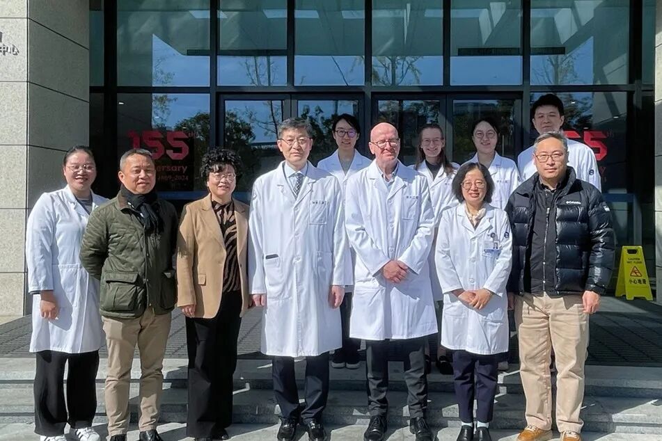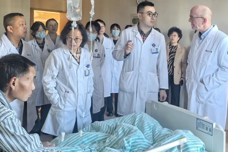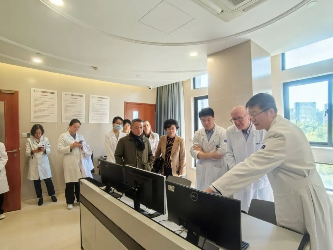 11月26日,Middleton教授团队至附属第二医院城东院区开展临床观摩研讨。附属第二医院党委常务副书记丁克峰教授接待牛津团队,介绍样本库管理以及临床试验病房,分享附属第二医院肿瘤学科在研究者发起的临床研究(IIT)方面的经验。附属第二医院肿瘤内科袁瑛主任带领Middleton教授团队团队进行肿瘤内科查房,并参加了大肠癌多学科会诊(MDT),参观日间化疗病房。在解放路院区,Middleton教授进行了特邀学术报告和与会人员的讨论,并携团队参观附属第二医院院史馆。牛津团队对附属第二医院的诊治经验以及高水平的院区设施表示了高度认可,希望双方在梅滕更院长等前辈基础上,进一步拓展中英医学合作。