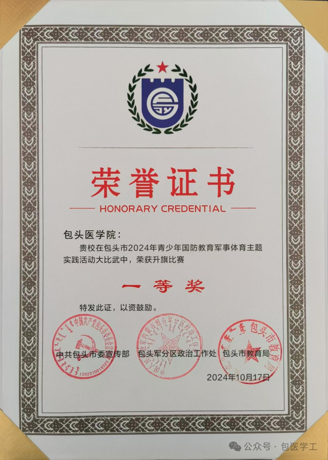 通过本次比赛,不仅锻炼了国旗护卫队队员们的军事素养,也充分展现了包医学子的时代担当和责任使命。希望国旗护卫队全体队员再接再厉,继续保持优良作风,将荣誉作为新的起点,以更加优异的成绩谱写新时代青春赞歌。