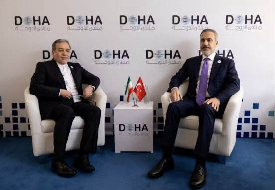 12月7æ—¥ï¼Œä¼Šæœ—å¤–äº¤éƒ¨é•¿é˜¿å·´æ–¯Â·é˜¿æ‹‰æ ¼å¥‡ï¼ˆå·¦ï¼‰åœ¨å¡å¡”尔多哈会è§åœŸè€³å…¶å¤–长哈åŽÂ·è²ä¸¹ï¼Œè®¨è®ºå™åˆ©äºšå±æœºã€‚(图/伊朗外交部)