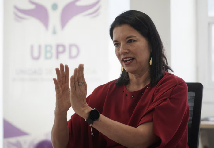 2023年4月19日,哥伦比亚失踪人员搜寻部门负责人Luz Janeth Forero在哥伦比亚波哥大接受路透社采访。