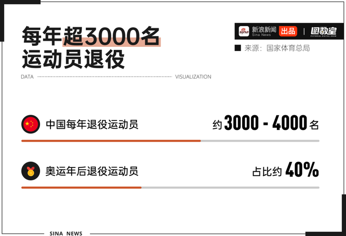 æ ¹æ®å›½å®¶ä½“育总局曾ç»å‘å¸ƒçš„æ•°æ®æ˜¾ç¤ºï¼Œæˆ‘国在册的专业è¿åŠ¨å‘˜çº¦5万人,æ¯å¹´é€€å½¹çš„è¿åŠ¨å‘˜çº¦æœ‰3000-4000å,尤其在奥è¿å¹´åŽé€šå¸¸ä¼šæœ‰4æˆçš„è¿åŠ¨å‘˜ä¼šå®£å¸ƒé€€å½¹ã€‚