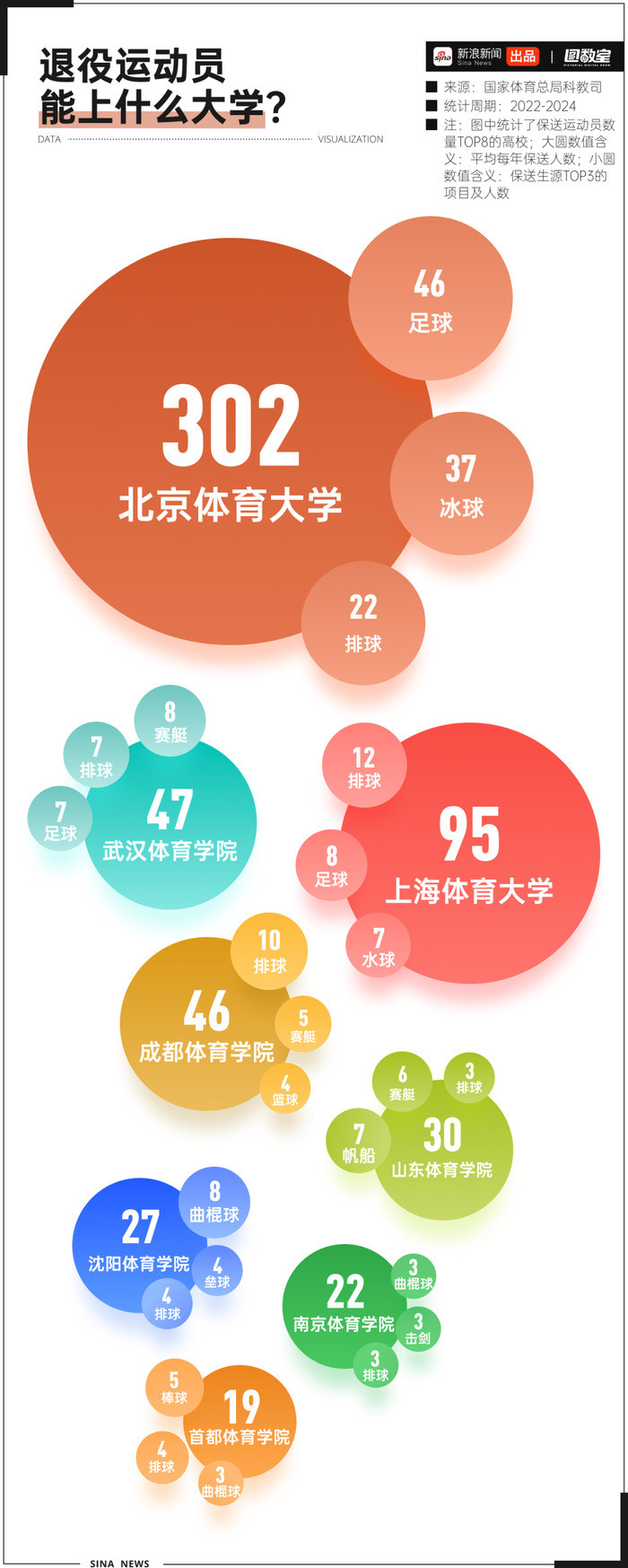 图数室统计了近三年的优秀è¿åŠ¨å‘˜ä¿é€åå•,å‘现æ¯å¹´éƒ½æœ‰1000åå·¦å³çš„è¿åŠ¨å‘˜è¢«ä¿é€ä¸Šå¤§å¦ã€‚最“çƒçˆ±å¦ä¹ â€çš„三大项目分别是排çƒã€è¶³çƒã€ç¯®çƒï¼Œæ‹›ç”Ÿäººæ•°æœ€å¤šçš„é«˜æ ¡åˆ†åˆ«æ˜¯åŒ—äº¬ä½“è‚²å¤§å¦ã€ä¸Šæµ·ä½“育大å¦ä»¥åŠæ¦æ±‰ä½“育å¦é™¢ã€‚