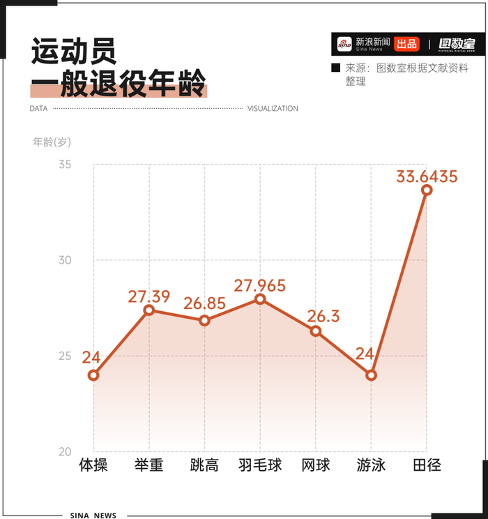 *“è¿åŠ¨å‘˜ä¸€èˆ¬é€€å½¹å¹´é¾„å›¾â€å‚考文献:《ä¸å›½ä¸¾é‡å¥¥è¿å† 军è®ç»ƒè¿‡ç¨‹å¹´é¾„特å¾ç ”究》《ä¸å¤–优秀跳高è¿åŠ¨å‘˜èº«ä½“å½¢æ€åŠå¹´é¾„特å¾çš„æ¯”è¾ƒç ”ç©¶ã€‹ã€Šæˆ‘å›½ä¼˜ç§€ç¾½æ¯›çƒè¿åŠ¨å‘˜å…¨ç¨‹æ€§å¤šå¹´è®ç»ƒè¿‡ç¨‹çš„年龄特å¾ã€‹ã€Šä¸å¤–优秀网çƒè¿åŠ¨å‘˜å¹´é¾„ç‰¹å¾æ¯”è¾ƒç ”ç©¶ã€‹ã€Šä¸–ç•Œä¼˜ç§€ä½“æ“è¿åŠ¨å‘˜å¹´é¾„ç‰¹å¾æ¯”è¾ƒç ”ç©¶ã€‹ã€Šå½±å“æˆ‘国优秀游泳è¿åŠ¨å‘˜è¿åŠ¨å¯¿å‘½çš„å› ç´ å’Œå¯¹ç–》《世界优秀田径è¿åŠ¨å‘˜ç«žæŠ€æ°´å¹³å‘展特å¾ç ”究》