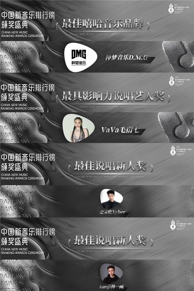 11月28日-12月1日,MUSIC P.I.E-2024杭州国际音乐·演艺产业博览会在杭州萧山举办,种梦音乐D.M.G受邀参加本次展览会,并在由国家音乐产业基地联盟主办的2024中国新音乐排行榜颁奖盛典中斩获四项行业大奖,种梦音乐D.M.G 获“最佳嘻哈音乐品牌”奖,种梦音乐D.M.G旗下艺人VaVa毛衍七获“最具影响力说唱艺人奖”,史宗伦Xyber、hanji林一函获“最佳说唱新人奖”。