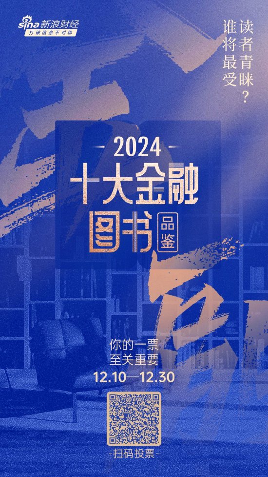 12月10日金融一线消息,由新浪财经、中国金融出版社与中信出版集团等共同发起的“2024十大金融图书品鉴”活动今日正式开幕。各位读者可点击投票通道 十大金融图书品鉴,为自己喜爱的图书投出宝贵一票。