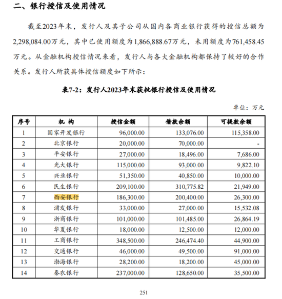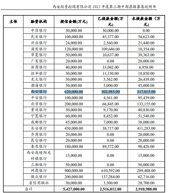 在西安银行第6大股东方西安城市基础设施建设投资集团有限公司的中票募集说明书中,作者发现,西安银行2023年底给予西安城市基础设施建设投资集团有限公司的授信额度共31亿元,不过虽然在去年底还未使用,但在今年一季度就已经给旗下子公司借款9.35亿元。