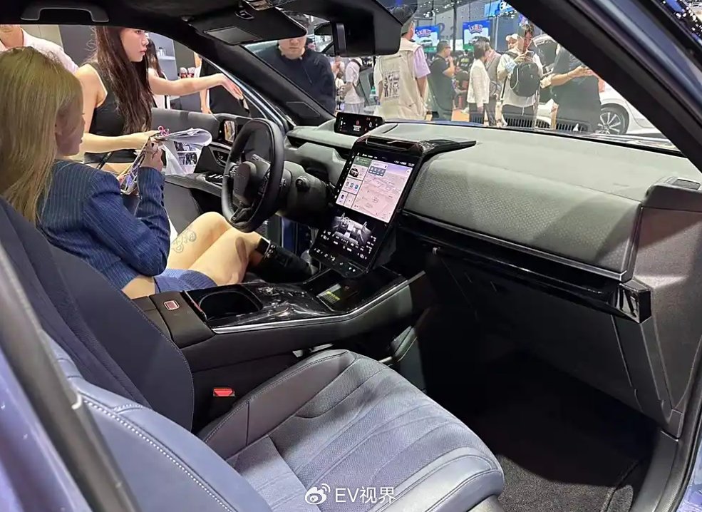 此前,新车内饰已经公开,12.8英寸+10.25英寸瀑布式中控屏,另外有41.9英寸HUD抬头显示和9.9英寸液晶仪表,两侧车门还有电子后视镜显示屏,车门上还有动态效果的氛围灯。前排有双头枕4个BOSE音响独立播放,车身其他部位有12个BOSE音响,支持四音区AI语音互动。