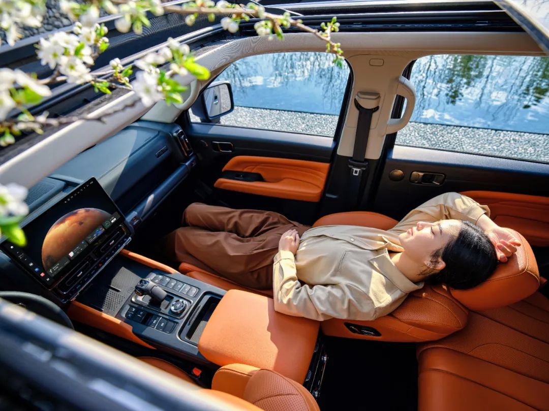 其次,座椅设计也很独到,靠背9层设计,坐垫8层设计,二排座椅坐垫长522mm,舒适配置上,还有分区靠背吸风、坐垫吹风,高配版本标配8点按摩……按长城公布的数据,它的静谧性来说,120Km时速车内比宝马X5L和奔驰GLE(配置|询价)还安静。在舒适性上也体现了“一家人的越野”。