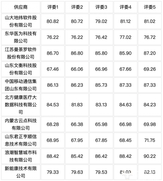从图标上可以看到,该项目吸引了不少知名供应商投标,包括东华医为、中国移动山东公司、以及浪潮。