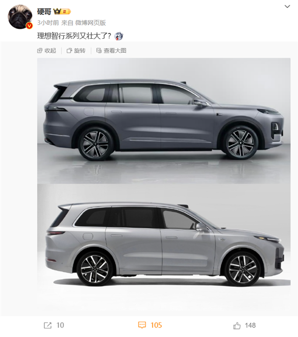 快科技12月10日消息,理想员工、博主“@硬哥”今日在微博上贴出了深蓝S09和理想L9的车身侧面照,并配文“理想智行系列又壮大了?”