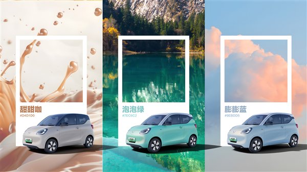 车身侧面,新车采用隐藏式的B柱设计,新车会有普通车漆和高定车漆,普通车漆全车一体色,高定车漆采用上下双色车漆,高定车漆共有三种选择,包括膨膨蓝、泡泡绿、甜甜咖。