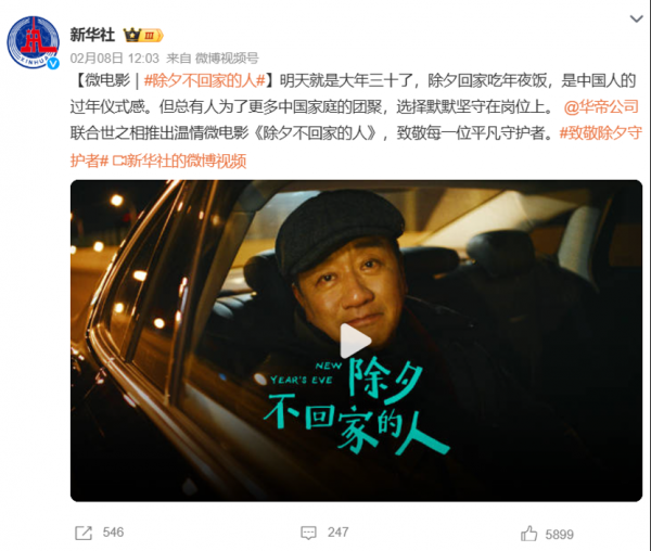 围绕传统文化的传承和价值深挖,华帝在春节前上线了《除夕不回家的人》这一催泪视频。通过将镜头对准那些主动选择除夕不回家的人,讲述了不起眼的守护者们和他们的付出。视频传达的正能量和奉献精神打动了万千观众,视频全网总播放量超900万次,微博话题#除夕不回家的人#总阅读量2亿+,自然热搜上榜2次,持续在榜3小时,全网总曝光量超过2.65亿。新华社、北京日报等多家媒体点赞。