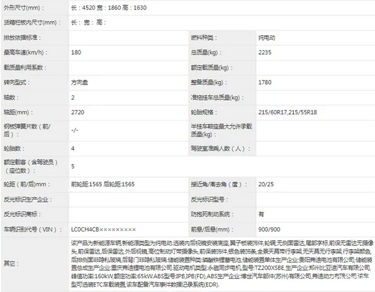 车身尺寸为4520/1860/1630毫米,轴距2720毫米。