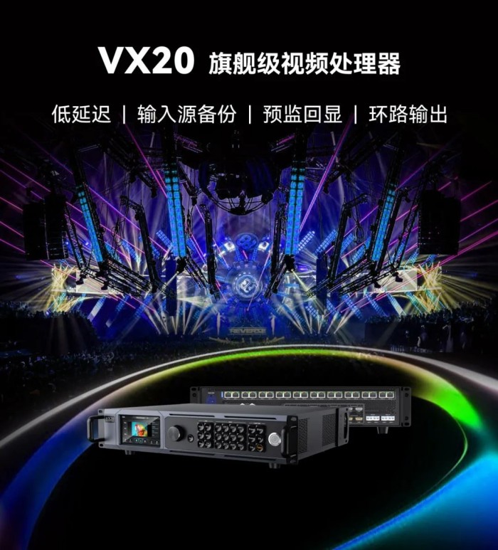 VX 系列旗舰主控 VX20 成为展会焦点之一。VX20 是融合视频切换器和视频控制器的多合一4K发送器,PVW 预编排画面,PGM 上屏显示,专为舞台租赁而生,提供高效画面管理与稳定切换;业内唯一支持启用 PVW PGM 模式时不降带载,性能始终如一。