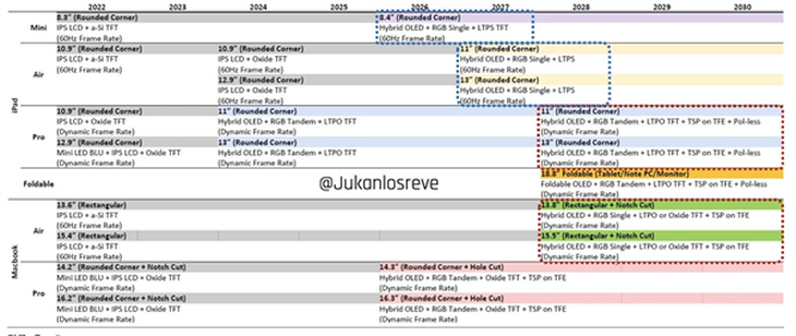 据市场研究公司Omdia透露,苹果将全面升级iPad产品线,未来将转向OLED屏幕。预计最早在2026年,iPad mini将升级为OLED显示屏,紧随其后,2027年11英寸和13英寸的iPad Air也将进行同样的更新。与iPad Pro的“双层串联OLED”技术不同,iPad mini和iPad Air的OLED屏幕将采用单层设计,并保持60Hz的刷新率。