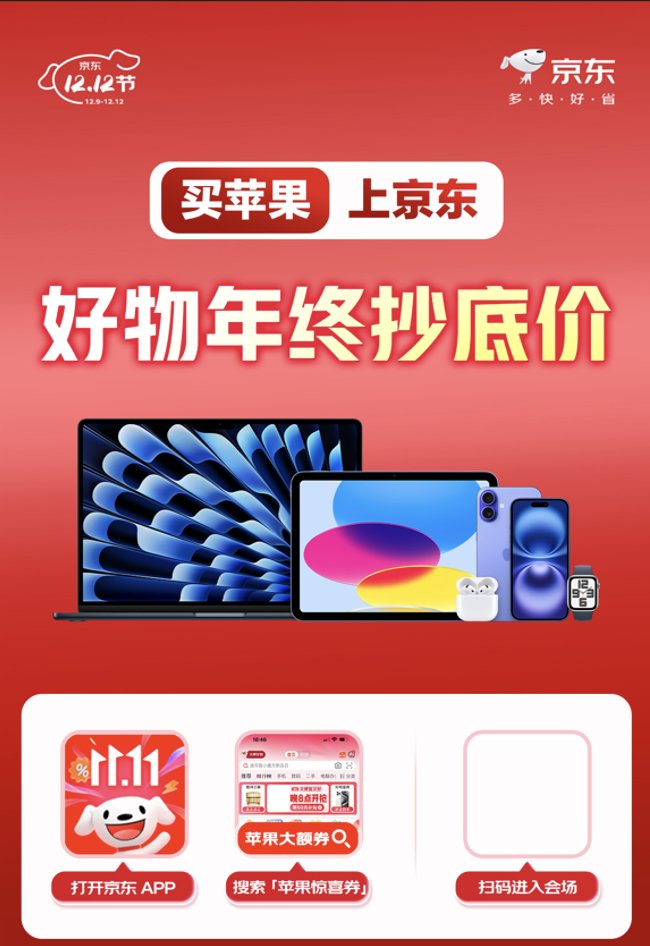 12月9日晚8点,京东12.12年终特惠将正式拉开帷幕,iPhone、iPad、Apple Watch、MacBook、AirPods 等多款 Apple 产品均有年终好价。活动期间,Apple产品京东自营旗舰店也带来了至高500元惊喜券免费大放送、iPhone 16 Pro至高立减900元、App Store充值卡至高优惠10%等惊喜福利。近期准备购买Apple产品的消费者推荐认准京东,只需打开京东App搜索“苹果惊喜券”即可领券享受专属优惠好价。