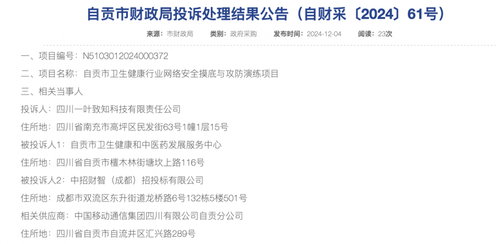 排名第二和第三的中标候选人分别是四川雄烨商贸有限公司、四川众鼎系统集成有限公司,此外中国电信股份有限公司自贡分公司参与了投标。