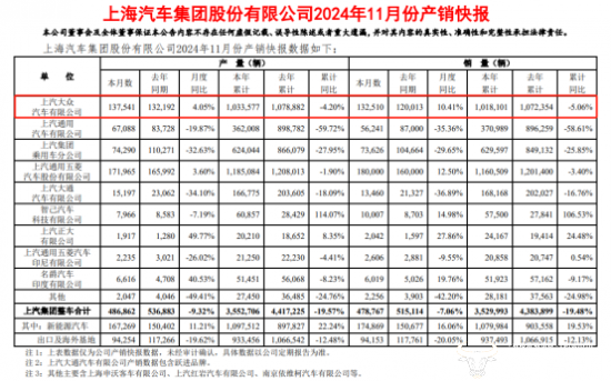 近日,上汽集团披露了2024年11月份产销快报,其中,上汽大众在本月终于实现销量增长,结束了连续6个月销量同比下滑的态势,引发关注。