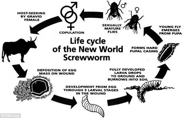 近日,据媒体报道,一种可怕的食肉寄生虫,试图从墨西哥进入美国,卷土而来!