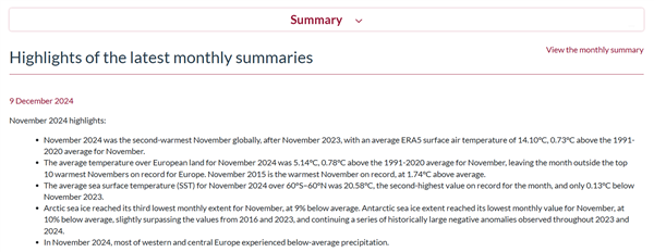 C3S表示,今年前11月的数据,基本可以确定2024年将成为有记录以来最热的一年,今年也将是全球平均气温比1850-1900年工业化前时期高出1.5℃的首个年份。