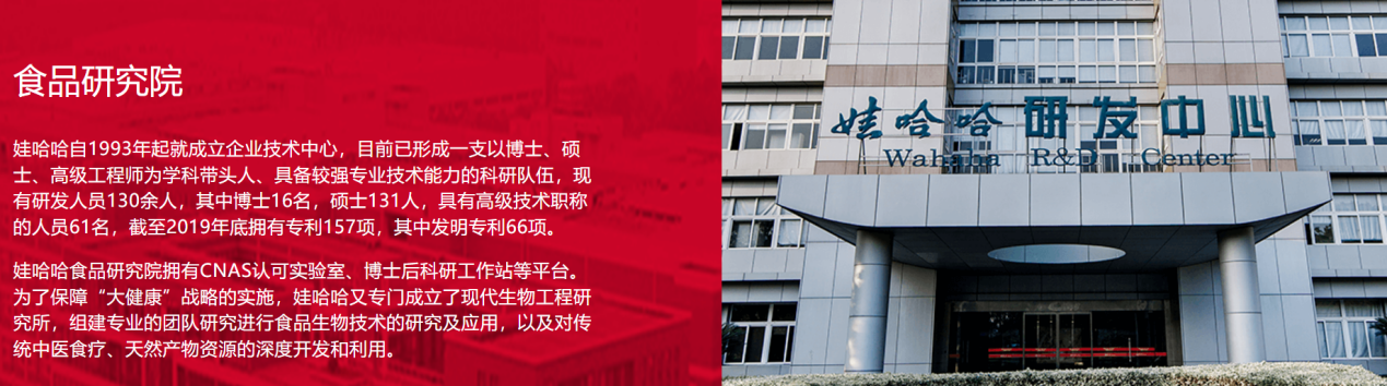 æ ¹æ®å¨ƒå“ˆå“ˆå®˜ç½‘公开的信æ¯ï¼Œå¨ƒå“ˆå“ˆçŽ°æœ‰é£Ÿå“å’Œæœºç”µä¸¤å¤§ç ”ç©¶é™¢ã€‚å…¶ä¸é£Ÿå“ç ”ç©¶é™¢å§‹äºŽ1993å¹´æˆç«‹çš„ä¼ä¸šæŠ€æœ¯ä¸å¿ƒã€‚