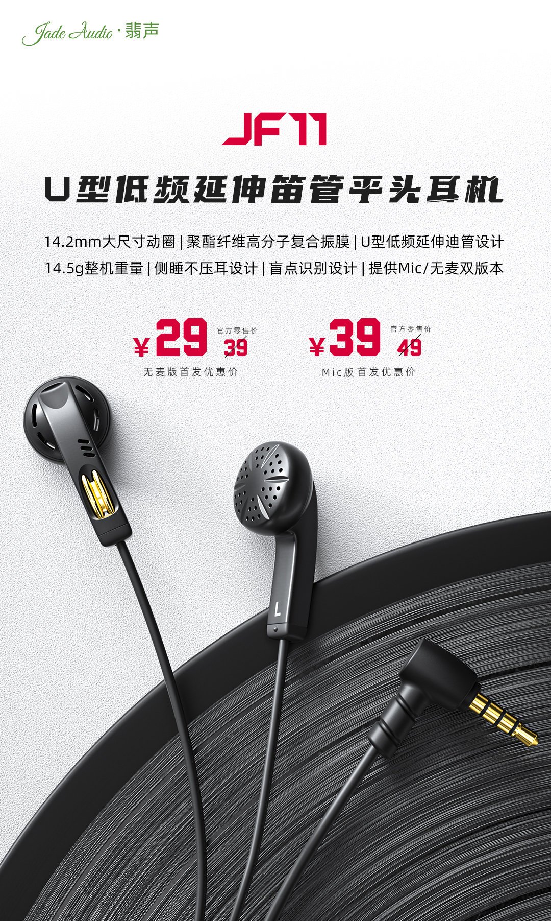 无麦版:官方零售价 39 元;首发优惠价 29 元