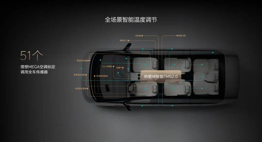 比如在隧道场景下,理想MEGA可以通过地图信息识别隧道场景,结合光照传感器、外温传感器综合判定,在温度控制上做特殊处理,对车外污染源做隔绝,以保证座舱舒适度。