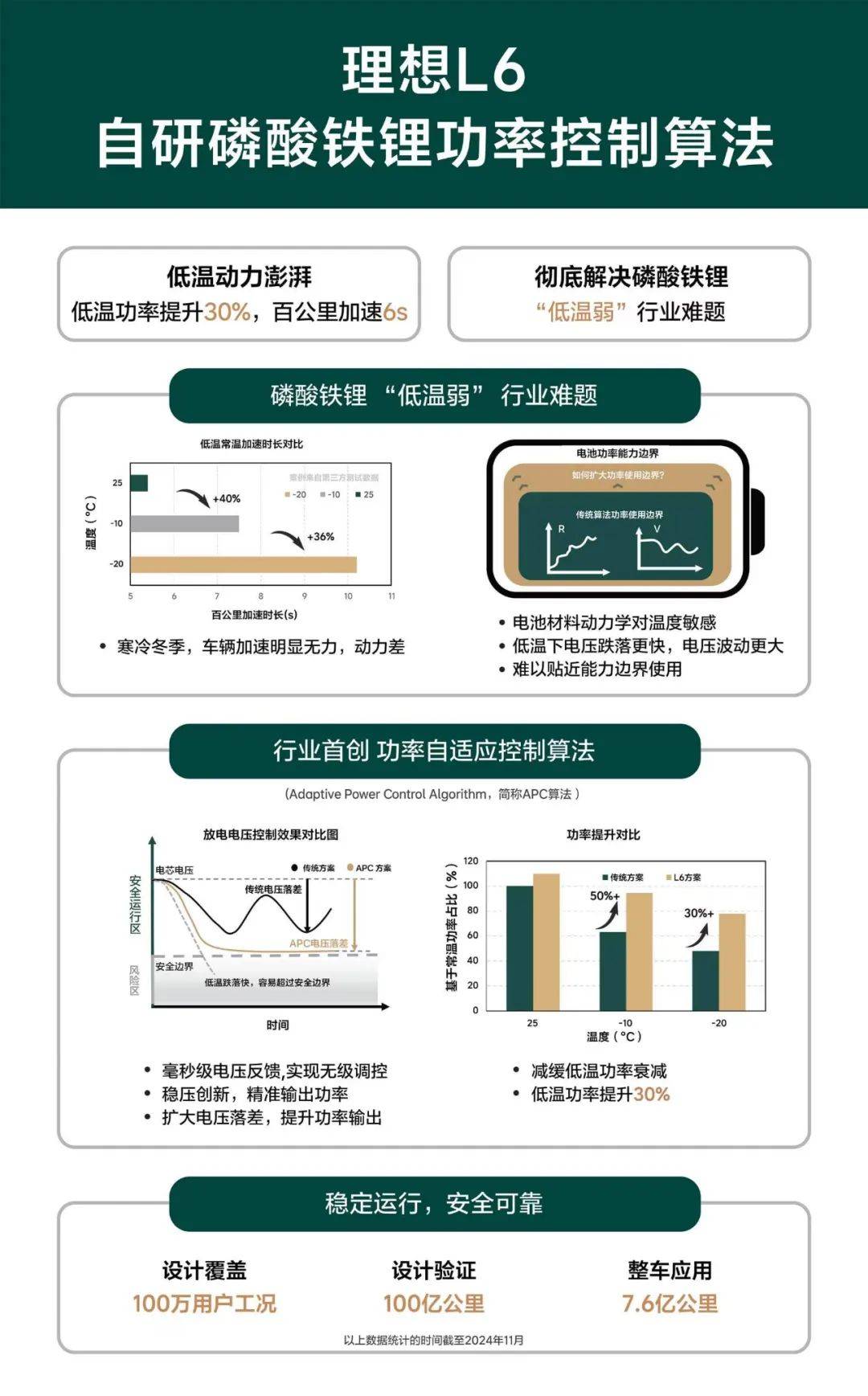 而通过ATR和APA两个算法的共同作用,解决了磷酸铁锂电池的痛点,同时让理想L6的低温纯电续航提升了15%。