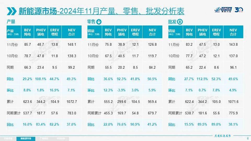 作为论据,继续聚焦乘联会刚刚公布的11月成绩单,批发销量中纯电占比为58%、插混占比为33%、增程占比为9%。