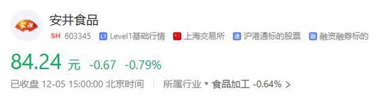 然而,市场对安井食å“çš„è¿™æ¬¡å‹Ÿèµ„è®¡åˆ’ï¼Œä¼¼ä¹Žå¹¶ä¸æ„Ÿå†’。公告一ç»å‘布,市场å应冷淡,股价连跌数日,截至12月5æ—¥æ”¶ç›˜ï¼Œå®‰äº•é£Ÿå“æ”¶æŠ¥84.24。