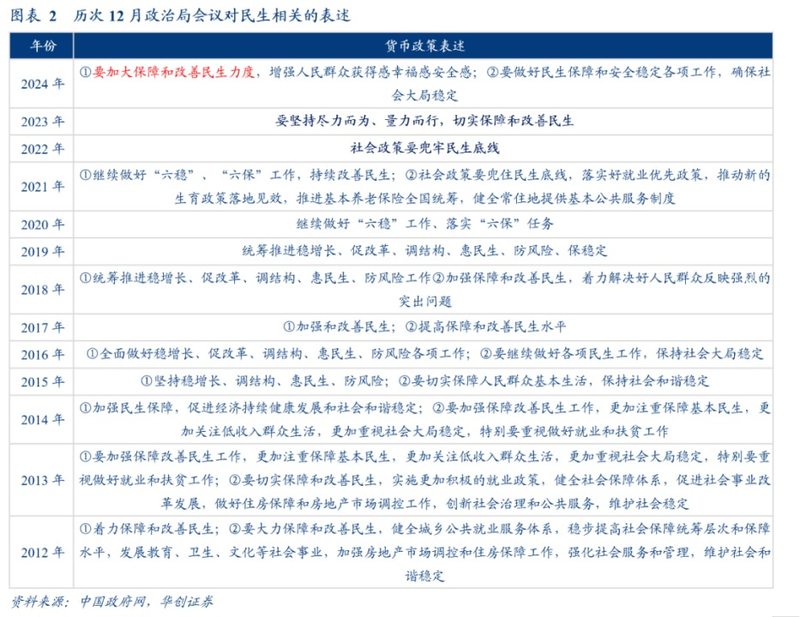 张瑜分析表示,首先,扩内需排序靠前,证明决策对扩内需、提振消费重视排序有所提升;其次,民生保障的措辞有重大变化,表明2025年民生保障有加力的确定性,托幼、养老、教育、生育有望看到增量惠民政策的响应和落地。