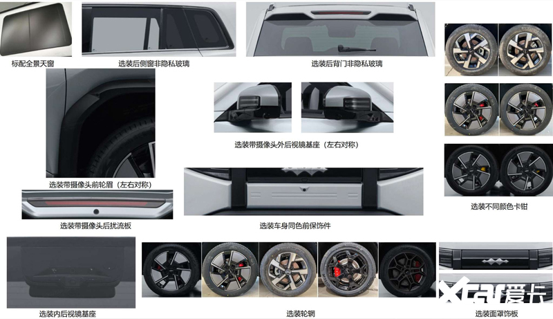 豹3配备双电机四驱动力系统,前后电机最大功率分别为110kW和200kW,匹配弗迪动力生产的磷酸铁锂电池。豹3配备封闭式进气格栅及分体式大灯,前保险杠、车顶行李架、车门下方及前后翼子板均采用熏黑处理,车侧采用隐藏式门把手设计,尾部搭载 小书包 。