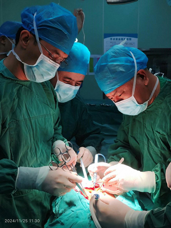 11月25日,唐启彬教授带领喀地一院肝胆外科医生团队为图尔逊实施了手术,由于手术时间长、牵涉器官多、手术风险高,彭俊教授带领麻醉团队进行了充分的术前准备和预案制定,为手术保驾护航。手术历时10余个小时,切除了脾脏、胰体尾、部分肝脏,摘除了腹腔大大小小近20个病灶。在唐启彬教授精湛的手术操作和彭俊教授精准的麻醉配合下,手术过程非常平稳。“谢谢您,给了我老公第二次生命,太谢谢您了!”阿依古丽在手术室门口对唐教授表达了感激。