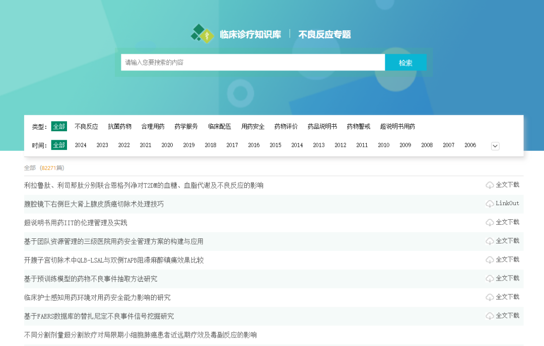 海量阅读文献:下载阅读优质科普类文献、药物不良反应文献、典型病例病案(个案报告、多例报告)等。