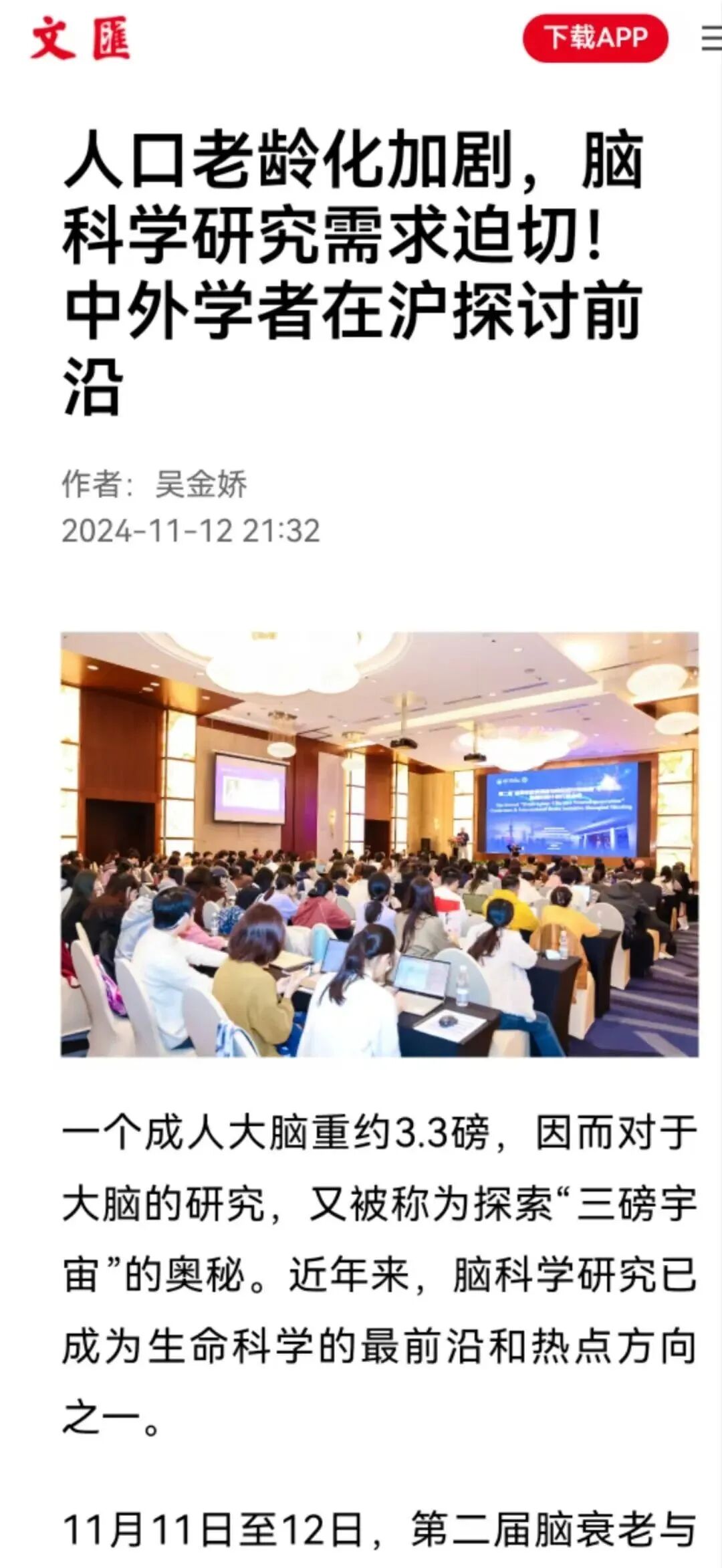 为进一步推动神经退行性疾病中胶质细胞功能研究的国际学术交流与合作,2024年11月11至12日,第二届脑衰老与神经退行性疾病学术会议暨国际脑计划代表会议在上海举办。