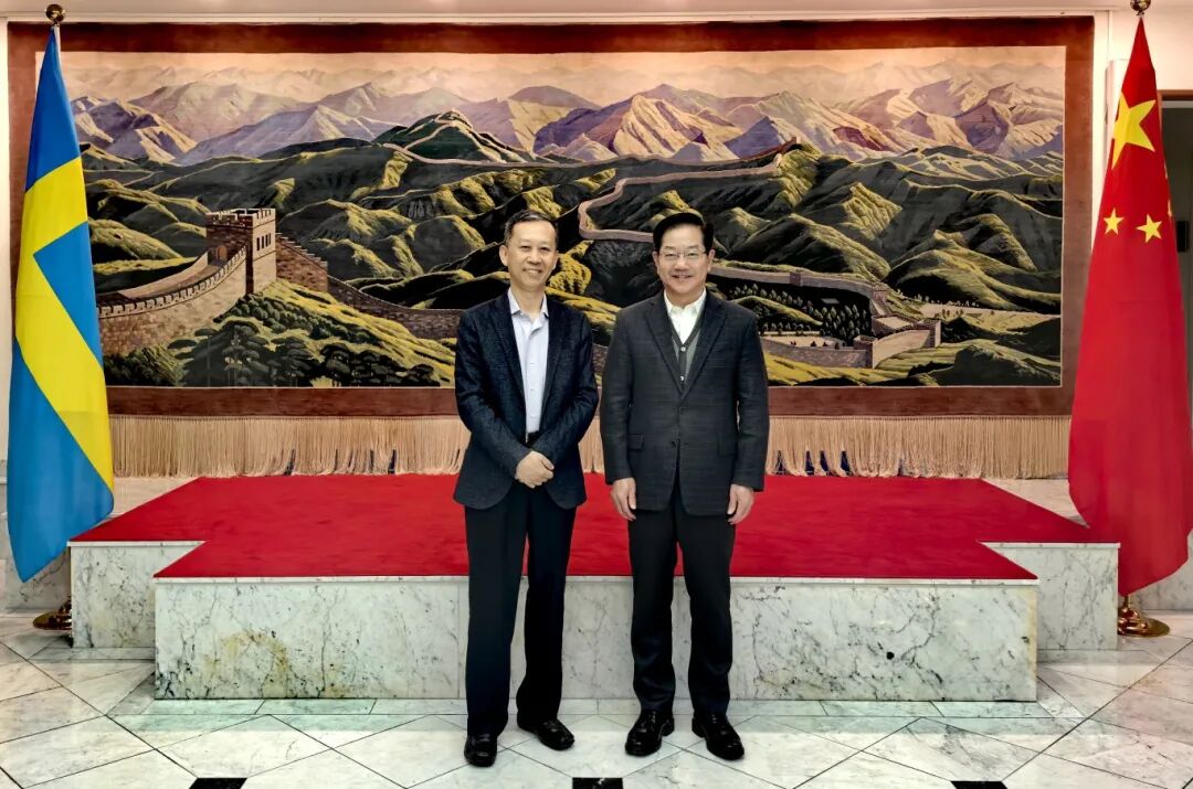 瑞典是第一个与中国建交的西方国家,明年将迎来中瑞建交75周年,中瑞两国友好交往历史悠久。在瑞典出访期间,范先群首先拜会了中国驻瑞典大使崔爱民,介绍了上海交通大学医学院与瑞典高校在医学领域的合作情况,并表示将继续致力于推动中瑞健康教育事业的交流与发展。崔爱民充分肯定了上海交通大学医学院与瑞典医学院校合作取得的丰硕成果,并表示在卫生健康领域中瑞具有良好合作基础和广阔合作前景,期待交大医学院能与瑞典医学院校携手,以联合科研和科技创新推动中瑞医学教育务实合作,创造更多科研成果,增进人类共同福祉。中国驻瑞典大使馆负责教育事务的黄立琼参赞参加会见。