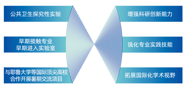依托国家级高水平公共卫生学院,重点打造数智健康、重大传染病防控与突发公共卫生事件应急管理、营养环境职业与健康、健康政策与健康促进等学科方向,构建以数字赋能为特色,医工信融合、多学科交叉的“本-硕-博”贯通培养体系,与联合国儿童基金会、国家、省、市各级疾控中心共建实践教育协同体,共同培养公共卫生领域一流拔尖人才。