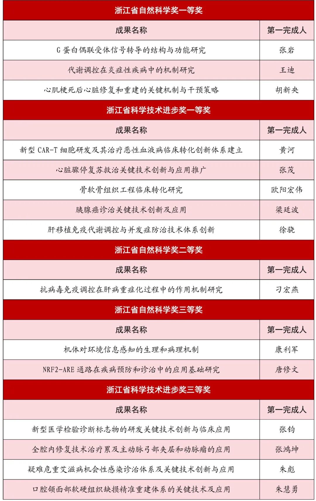 11月22日上午,加快建设创新浙江因地制宜发展新质生产力动员部署会暨全省科学技术奖励大会举行,会上表彰了2023年度浙江省科学技术奖,浙江大学医学院以第一完成单位获一等奖8项、二等奖1项,三等奖6项,为谱写中国式现代化浙江新篇章注入浙大医学创新动能。