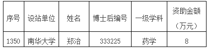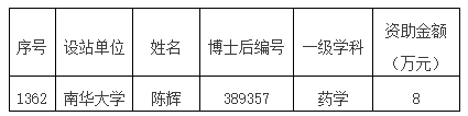 11月14日,中国博士后科学基金第76批面上资助评审结果公布,南华大学药学院陈辉博士后,在激烈的竞争中脱颖而出,成功获得资助,是本批次南华大学校本部唯一获得资助的博士后。