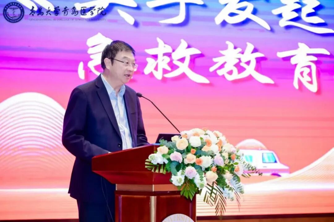 青岛大学青岛医学院党委书记、青大附院党委书记蒋光峰宣读了《关于发起成立山东省学校急救教育联盟的倡议》,倡议成立工作联盟和基金,常态化开展交流培训,选树急救教育典型,整合各方资源,协同做好学校急救教育专项工作。