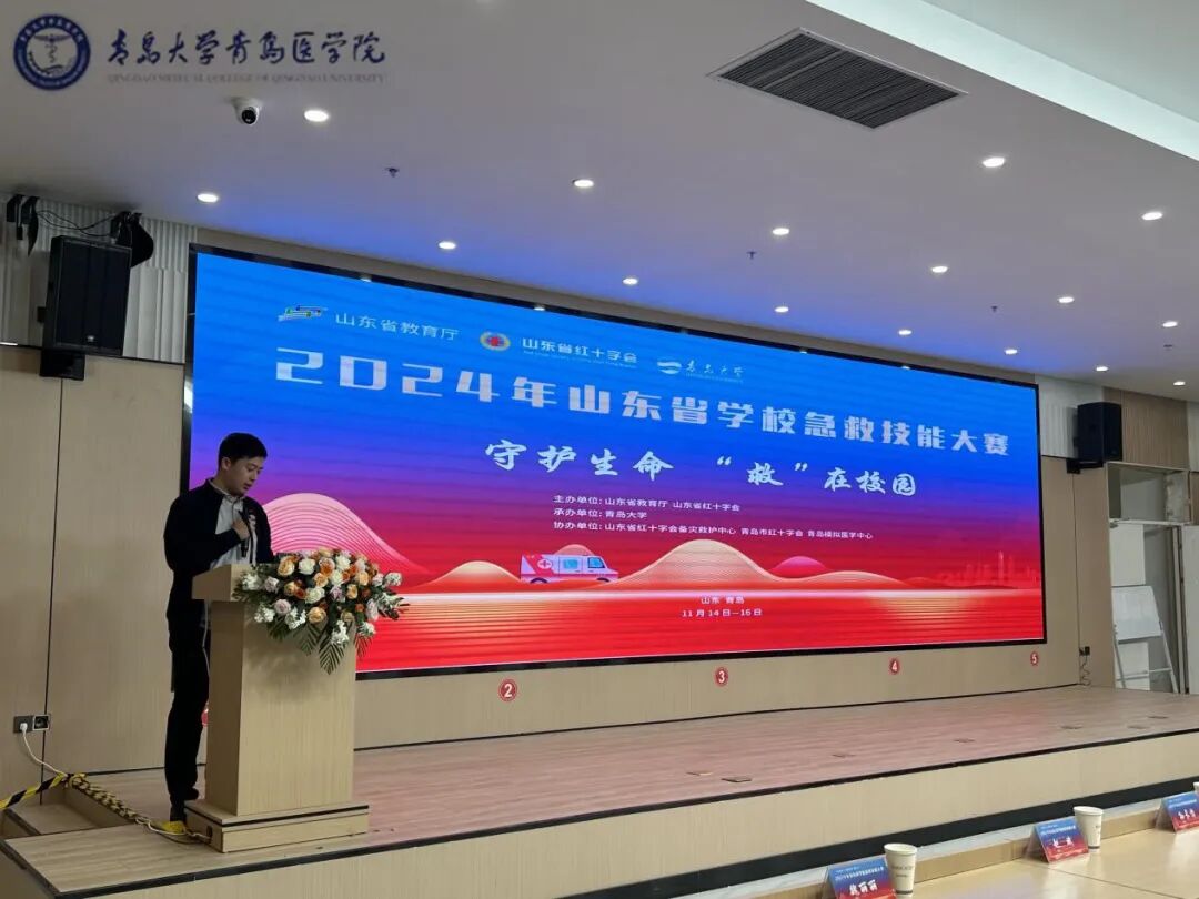2024年11月14日至15日,山东省学校急救技能大赛在青岛举办。本次大赛以“守护生命,‘救’在校园”为主题,旨在以赛促学,激发全省广大师生学习急救知识的热情,提升应急救护技能水平,共同营造一个“人人学急救,急救为人人”的良好氛围。开幕仪式上,青岛大学发起成立山东省学校急救教育联盟的倡议,整合全省优质急救教育资源,探索急救教育的新模式、新路径。