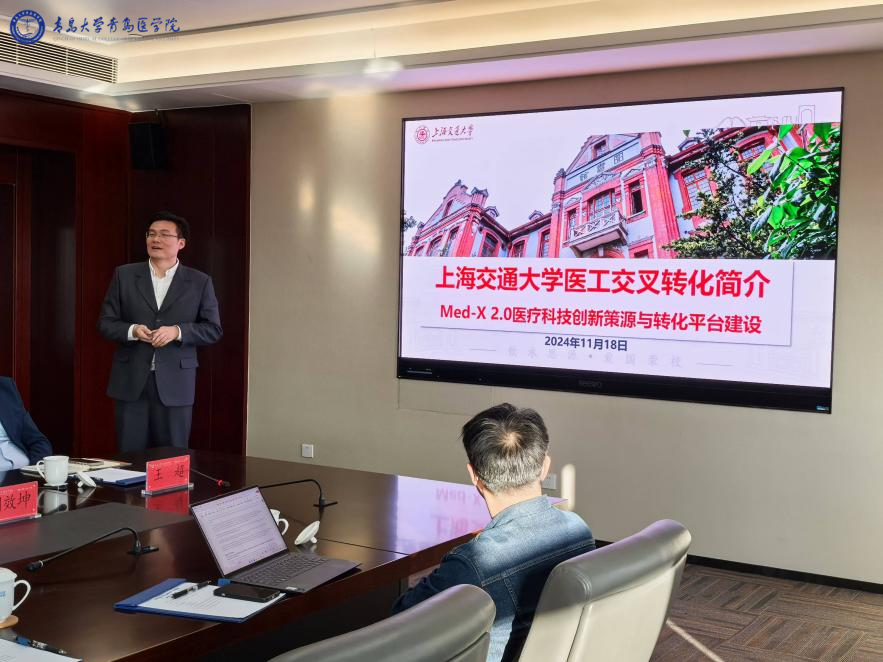 牛海涛对上海交通大学客人的来访表示热烈欢迎,并简要介绍青岛大学和青大医学的历史沿革、师资队伍、学科建设、人才培养、科学研究等方面的情况。