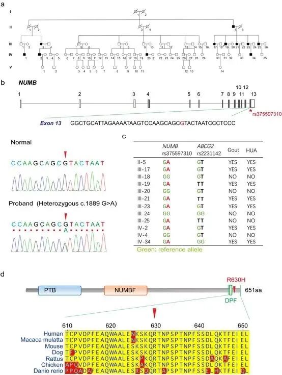 家系痛风患者中NUMB基因遗传变异
