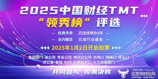 由知名财经科技资讯网站运营商财经网独家举办的2025财经TMT“领秀榜”盛典将于明年1月盛大召开。据透露,目前关于各行业年度先进单位及个人、产品的线上投票评选报名即将启动!本次评选不收取任何费用,运营商财经网将于本周公布具体奖项。