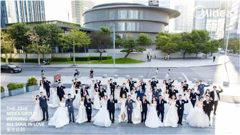 2024年11月30日,包括李工在内的30对新人身着盛装,与家人一起出现美的集团精心筹备的集体婚礼现场,接受集体的祝福。这场盛大而温馨的婚礼,是美的集团为员工们送上的珍贵礼物,并对员工人生幸福一刻送上深深祝福。现场花团锦簇、爱意弥漫,新人们在同事与家人的共同祝福下,开启了美满婚姻生活的崭新篇章。至今,美的集团集体婚礼已连续举办了33届,也成为了美的员工关怀文化的一个动人缩影。