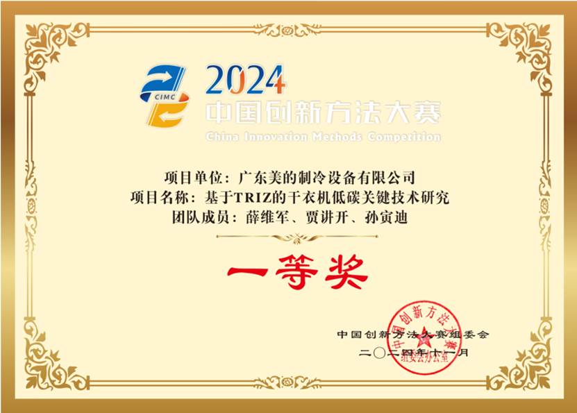 近日,在由中国科学技术协会、重庆市政府联合主办的2024年中国创新方法大赛的总决赛上,美的集团中央研究院团队主导的《基于TRIZ的干衣机低碳关键技术研究》项目以出色的表现荣获全国一等奖。